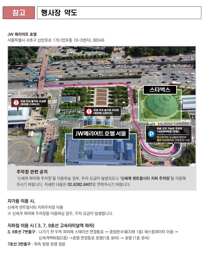 나. 장소 : 서울 서초구 JW메리어트 3층 살롱 4, 5 (서울고속버스터미널 인근)